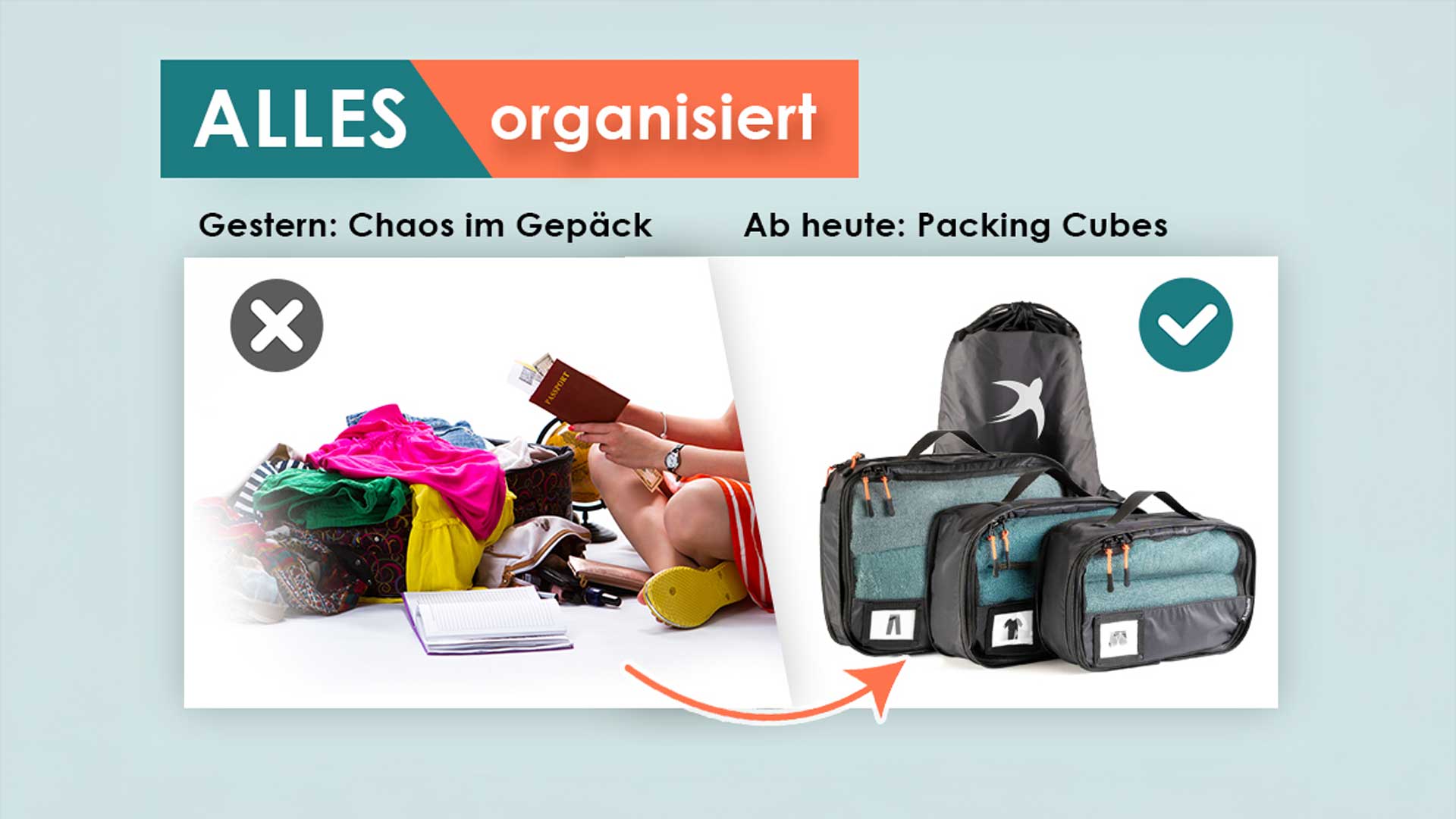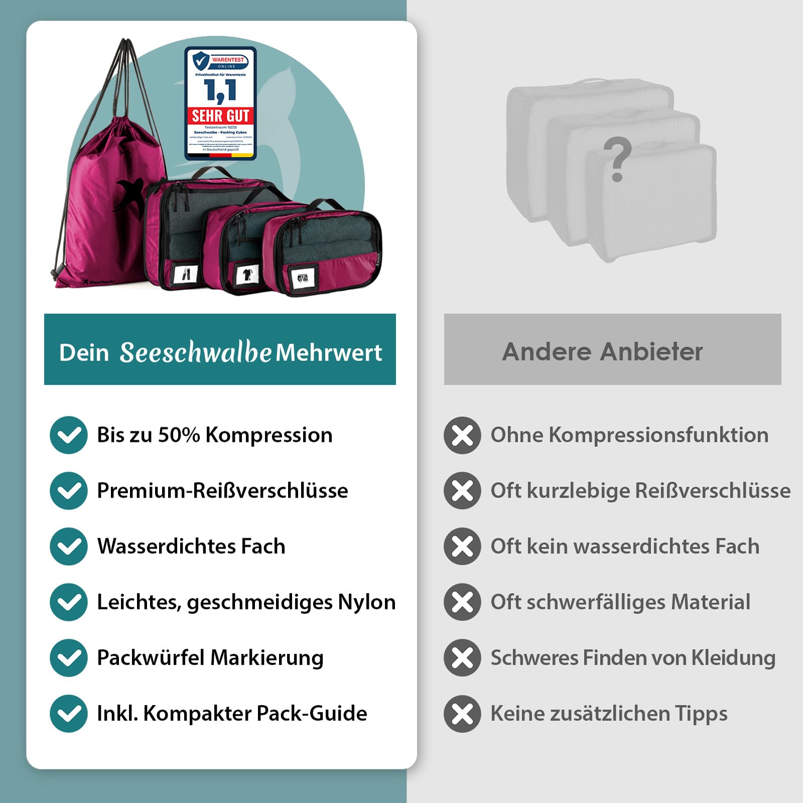 Smarter packen, mehr erleben. Ordnung im Gepäck & Freiheit im Kopf mit den Seeschwalbe Packing Cubes.